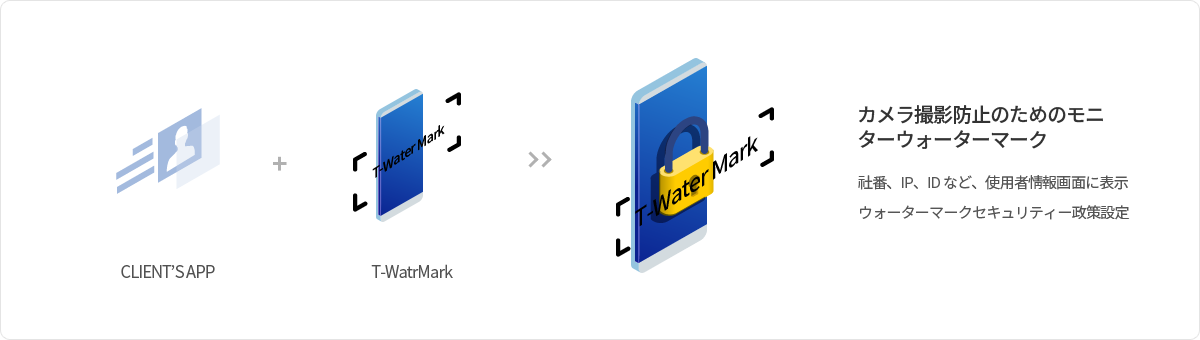 T-WaterMark for Mobileはカメラで画面を撮影したり、画面をキャプチャーして不法に流出することを防止する“画面ウォーターマーキングソリューション”です。